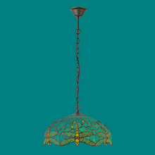 70824 The medium Dragonfly pendant in beige is a traditional interpretation of the iconic Tiffany Dragonfly design, in natural muted colours with coloured glass beading and teamed with a dark bronze effect fitting. Compatible with LED lamps, dimmable and matching items available