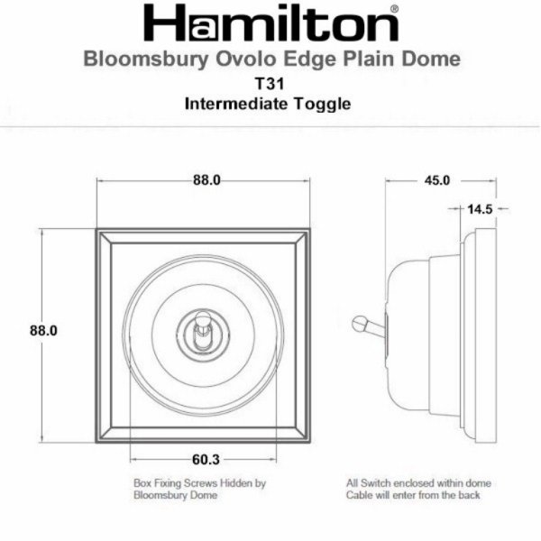 Hamilton BOAPT31PB-W Bloomsbury Ovolo Antique Mahogany 1 Gang 20AX Intermediate Toggle Switch with Polished Brass Plain Dome and White Collar