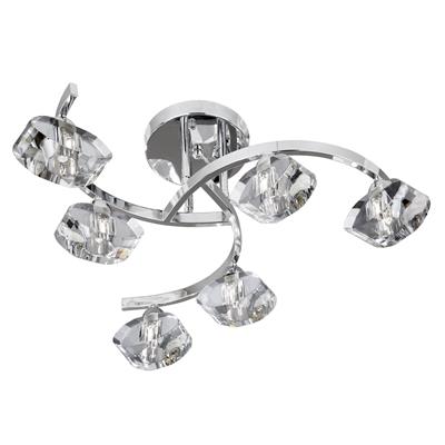 This Sculptured Ice Chrome 6 Light Curved Semi-Flush with Clear Shaped Glass is ultra-modern and stylish. The fitting has a circular ceiling plate finished in chrome and three curved arms leading to the stunning six oval glass shades. And it provides a practical source of light for any contemporary bedroom, living room, dining room or kitchen ceiling.